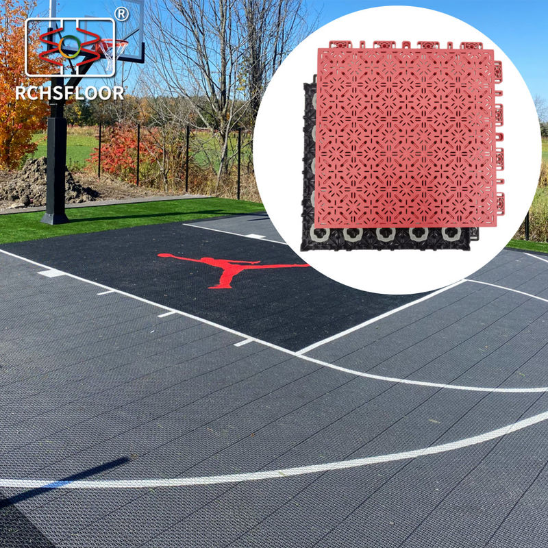 Multi Sport Interlocking Tiles from RCHSFLOOR is the perfect solution to make basketball courts, tile sport floors, gym floors, playground floors and more. With its certification of CE and RoSH, you can be sure that this multi-sport interlocking tile is safe to use. With a minimum order quantity of 1 court, this product is available at a price range from 0.9 to 3.2. Delivery time is 30 days and payment terms are T/T 100% deposit. The supply ability is 5000㎡ a day. This interlocking tile is 1.8cm thick and is waterproof. It comes in many colors, such as black, grey, blue, red, green, yellow, orange, purple and pink.